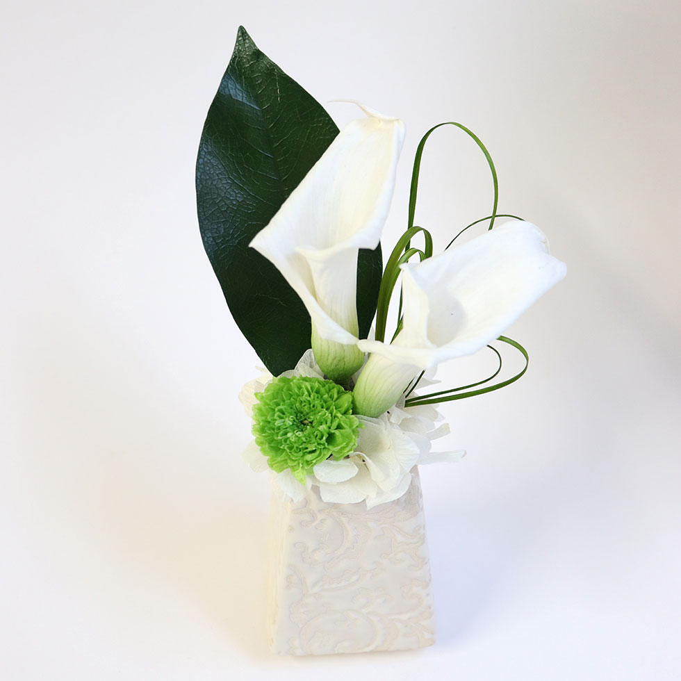 喪中見舞い 線香 花器付 プリザーブドフラワー 仏花 仏壇用 納骨堂 プリザーブド ミニ お仏壇 お彼岸 お供え物 お悔やみ お供え 線香 お線香 桐箱 喪中 見舞い 贈り物 花 初盆 お供え お供え物 プリザーブドフラワー セット 「花器付ミニ仏花と線香セット」ペット 犬 猫