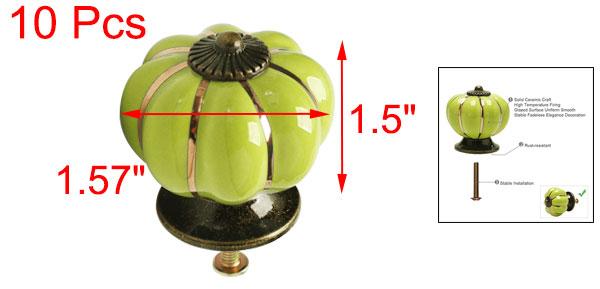 ソウテン セラミック製ノブ スキュー メタル製 グリーン パンプキン 引き出しドア手製ノブの代替品 10個入り