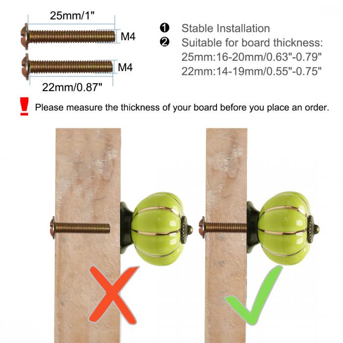 4.インストールが完了します.利用可能なカラー: パープル、スレートブルー、グリーン;利用可能な数量:1個、4個、6個、8個、10個; 規格:製品名:セラミック製ノブ;素材:セラミック、金属; 合計サイズ:40 x 38mm(D*H)ノブ径: 40mm;ノブの高さ: 38mm;スキュースレッド長さ: 25mm, 22mm;スキュースレッド径: 4mm;ボードの厚さ: 14-19mm; 16-20mm;注:1.測定工程により1?2mmの誤差があります。